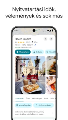 Fedezze fel a helyi titkokat és rejtett kincseket, akárcsak egy valódi helybéli. Évente több mint 500 millió felhasználó járul hozzá a térkép frissítéséhez, biztosítva ezzel a legpontosabb és legnaprakészebb információkat. Kerülje el a zsúfolt helyeket azáltal, hogy előre megtekinti egy adott időpontban várható látogatottságot. A Lens a Térképen funkcióval a kiterjesztett valóság segítségével láthatja a gyalogos útvonalterveket, mintha azok valójában előttünk lennének. Szűrje az éttermeket konyha típusa, nyitvatartás, ár, értékelés és sok más szempont szerint, hogy megtalálja a tökéletes helyet. Tegyen fel kérdéseket az éttermekről, parkolókról vagy bármely más helyről, és kapjon gyors, hasznos válaszokat.