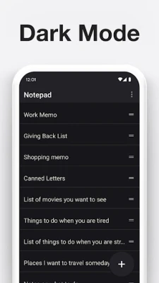 A jegyzetelés még sosem volt ilyen zökkenőmentes. Nincsenek felesleges funkciók vagy bonyolult beállítások – csak az essentials, amire valóban szüksége van. Készítsen gyors listákat, rögzítse a hirtelen támadó ötleteket, vagy vezessen részletes naplót, miközben az automatikus mentés funkció gondoskodik arról, hogy semmi se vesszen el. Jegyzetalkalmazásunkkal egy egyszerű balra húzással törölhet, és jobbra húzással hat élénk színből választhat, azonnal rendszerezve a bejegyzéseket. Akár tanuláshoz, akár szakmai projektekhez, akár a mindennapi teendőkhöz használja, ez a rugalmas eszköz tökéletesen illeszkedik életstílusához. Ráadásul a sötét mód is elérhető a kényelmesebb éjszakai használat érdekében.
