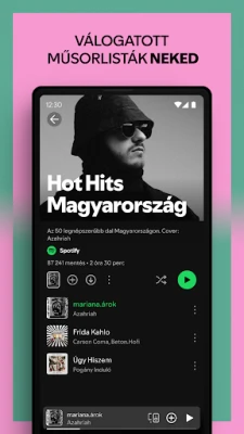 Fedezd fel a Spotify végtelen zenei és podcast világát, immár ingyenesen mobiltelefonon és tableten. Találd meg a tökéletes hangulatot bármikor, bárhol, személyre szabott ajánlatokkal és kedvenc előadóiddal.