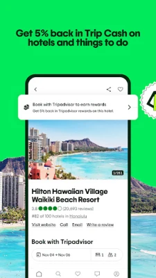 A Tripadvisor alkalmazással a világ felfedezése sosem volt még ilyen egyszerű és jutalmazó. Akár spontán kalandokra vágyik, akár egy gondosan megtervezett családi utazást szervez, ez a platform minden lépésnél az Ön partnere. Fedezze fel pillanatok alatt a legjobb helyi látványosságokat, biztosítson szállást, ami mindenki tetszését elnyeri, és állítson össze személyre szabott útitervet a globális utazóközösség tapasztalatai alapján. Mindeközben értékes Trip Cash pontokat gyűjthet, amelyekkel a következő élményei is még kedvezőbbé válnak.