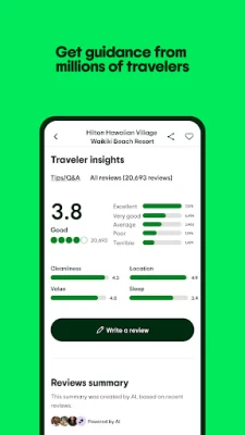 Maradjon rugalmas, bárhová is viszi az út! Fedezze fel a közelben lévő, kiemelkedő értékelésű látványosságokat és éttermeket, és élvezze a legtöbb élmény ingyenes lemondási lehetőségét. Testreszabott értesítések gondoskodnak arról, hogy soha ne maradjon le semmiről utazása során. Merüljön el a világ legnagyobb utazói közösségének bölcsességében. Böngésszen hiteles értékelések ezrei között, hogy bennfentes tippeket kapjon azoktól, akik már jártak ott. Spóroljon időt a mesterséges intelligencia által generált összegzésekkel, amelyek gyors áttekintést nyújtanak arról, mit gondolnak más utazók egy adott helyről.