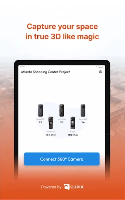 Párosítsd 360 kamerádat a VistaCapture-rel, és máris létrehozhatsz saját 3D térképeket a CupixVista-n. A VistaCapture másodpercek alatt automatikusan konfigurálja kamerádat, és elindítja a 360 videó felvételét. Csak sétálj, és rögzítsd a környezetedet könnyedén, professzionális eredményekkel.